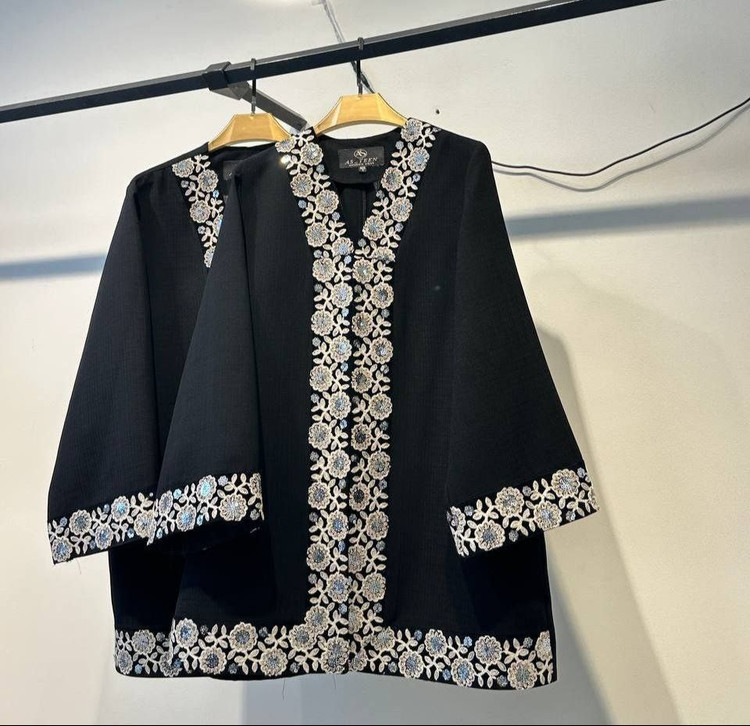 تزئینات: ویژگیمشخصاتنوع پوشاکمانتو کتی مجلسیجنس پارچهشانتون (با مشکیبودن بالا)رنگبندیتک رنگ مشکیسایزبندی۴ سایز (۱، ۲، ۳، ۴)ویژگیهای پارچهبدون آبرفت و پرزدهی، بسیار سبک و راحتطراحیکتی، یقه هفت (V-neck)، آستینهای سهربع یا مچی پهنتزئینات